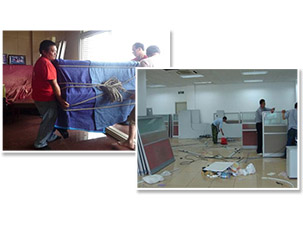 到達(dá)目的地后鋪設(shè)地板保護(hù)材料后開(kāi)始工作;電器類按要求接通電源及其他線路。